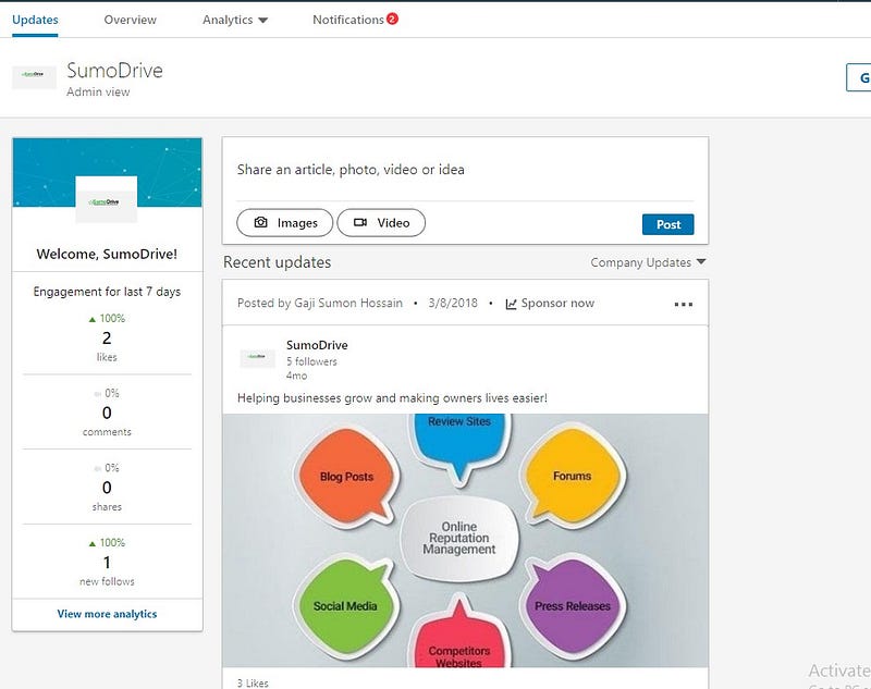 The Analytics tab provides companies with metrics and trends about their company page. Company page administrators can view rich data about their company page divided into specific sections: Updates, Followers and Visitors.