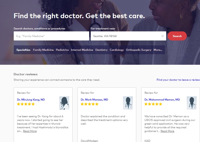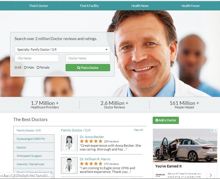 2. Healthgrades – Healthgrades ranks as today’s most trusted site for online reviews and ratings of doctors, dentists, and hospitals. The site lets users browse and find specialists by location, by specialty, by condition, and by the procedure. All in all, Healthgrades features over 1.1 million provider listings and seven million reviews and ratings. You can learn to claim and update your free profile on Healthgrades.
