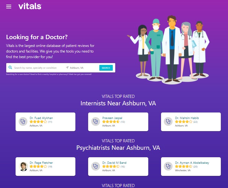 3. Vitals – Vitals’ database allows users to search by specialty, name, location, condition, and insurance. which features over 1 million physician profiles, 165,000 facility listings, and more than 9 million reviews and ratings. You can claim a Vitals listing by following the directions on the site’s signup page. On the listing, you can manage and edit information, including display name, practice address, specialties and expertise, and education and awards.